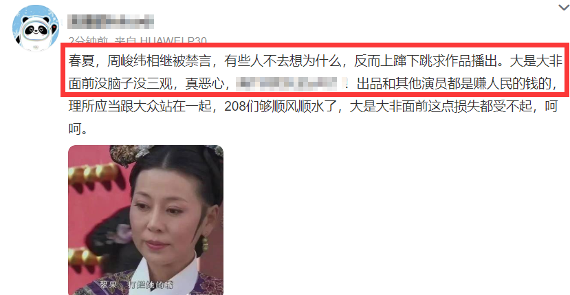 对于官方作出的这个惩处,有网友表示这是周峻纬应得的,毕竟他之前曾发表过不当言论,三观不正而且还带节奏,给粉丝做了错误的引导,他和春夏犯了同样的错误,目前春夏已经凉凉,不仅被除名,主演的作品也被下架了,不知道周峻纬会不会也是这样的结果。
