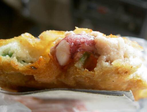 “泡虾”是温岭方言。正如稻草人不是“人”,泡虾也不是“虾”,它的原料是小麦粉。小麦粉和水搅拌成稠糊状,用器具取上适当的量,往里加上调味好的肉碎作馅,仍用器具包好,往沸油里一扔,面皮炸至金黄色,用漏勺捞起即可食用。