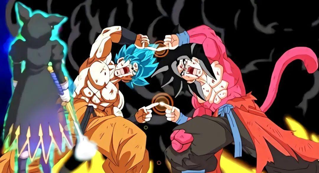 这种可能之前在网上传得沸沸扬扬,既然两位贝吉塔不在战场上,那么两位孙悟空干脆合体好了。最终,将气提升到极限的超4孙悟空和超蓝孙悟空通过合体变成了全新的战士,和少年弗来了一场轰轰烈烈的对决。