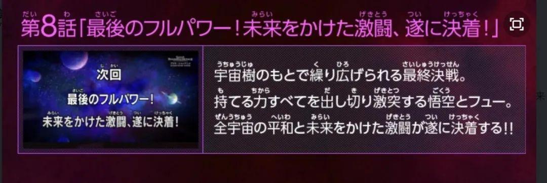 在宇宙树下展开的最终决战,孙悟空和弗使出了所有的力量,赌上全宇宙和平与未来的激斗终于结束了。