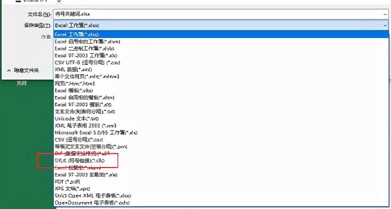 在Excel窗口,将该文件另存为SYLK文件。这里要注意,SYLK文件格式只会保存工作簿的活动工作表。