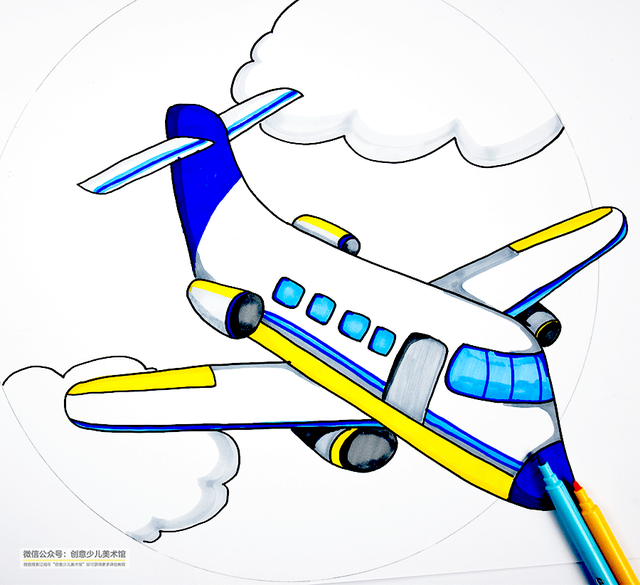 通过参考画法飞机大全的素材图片四年级,感受飞机的造型航天飞机变化,描绘出飞机不同的造型,运用马克笔(水彩涂色笔)涂上鲜艳的色彩,分析五年级画面的色彩对比,飞机儿童画简笔画,丰富细节,在深入刻画的时候注意色彩的变化,用邻四年级近色、对比色进行描绘,通过色相和纯度简的差别进行区分,增强生动感和空间感。