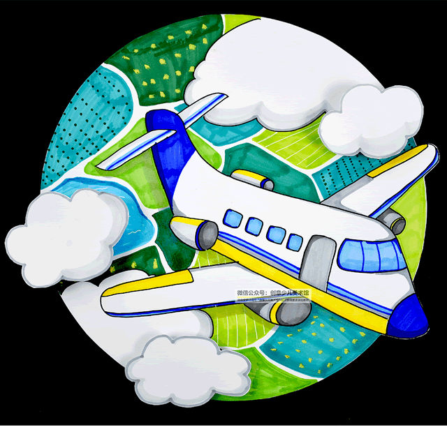 飞机在空中自由的翱翔,火箭飞机儿童画,飞机儿童画一等奖,我们的视野也会变得开阔起来,想象一下假如你坐在飞机上你想看到什么样的风景呢?在绘画中,主要运用水图片彩笔进行涂色,飞机儿童画画图片大全,能够锻炼我们的绘画技能,提高涂色技法。并结合剪贴的方式一等奖表现出半立体的白云,使画面更加丰富有趣。