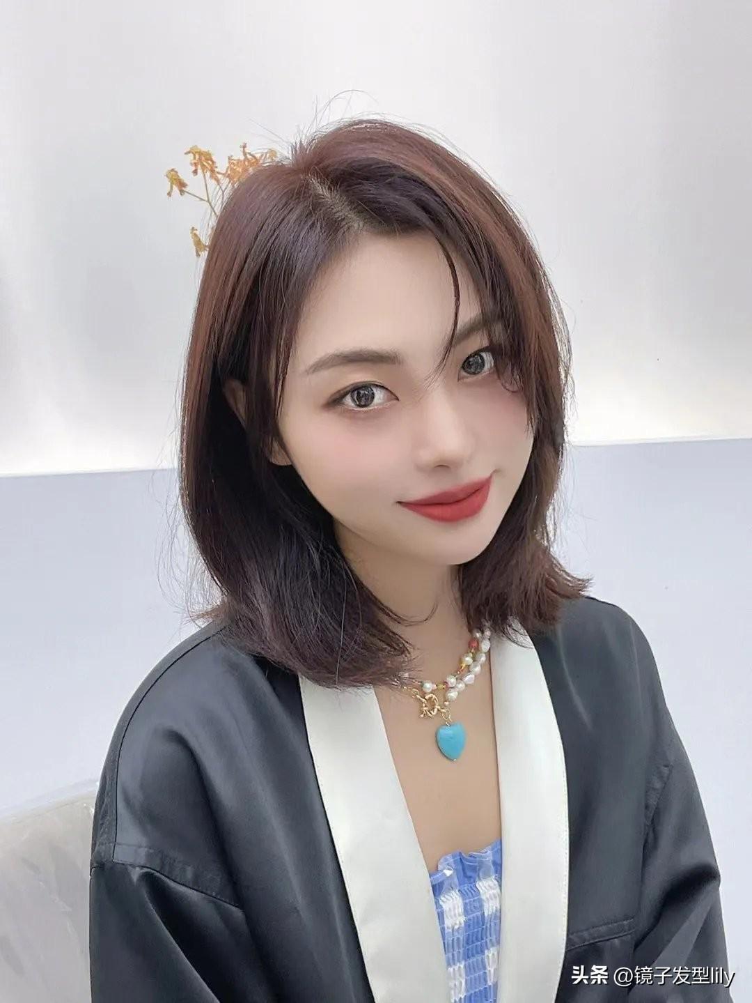 中长发配上深棕发色效果也不错,尤其是再剪个八字刘海,把整个五官衬托得特别的完美,知性又大方,美得让人无可挑剔。