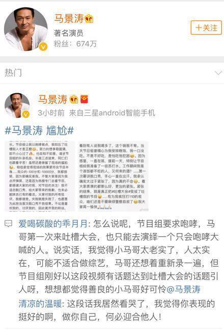 马景涛貌似也感受到了网友们不好的评价,特别在微博上进行了道歉。