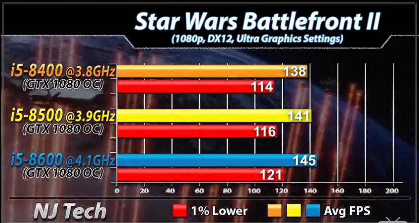 这个对比可能都不需要蜗牛来解释吧,大家也可以看出来,两者跑分差距也就2%左右,当然如果按照理论来推8500大概比8400强7%,不过这点性能差距都可以算作误差了。说理论肯定说服不了各位,来个游戏对比吧