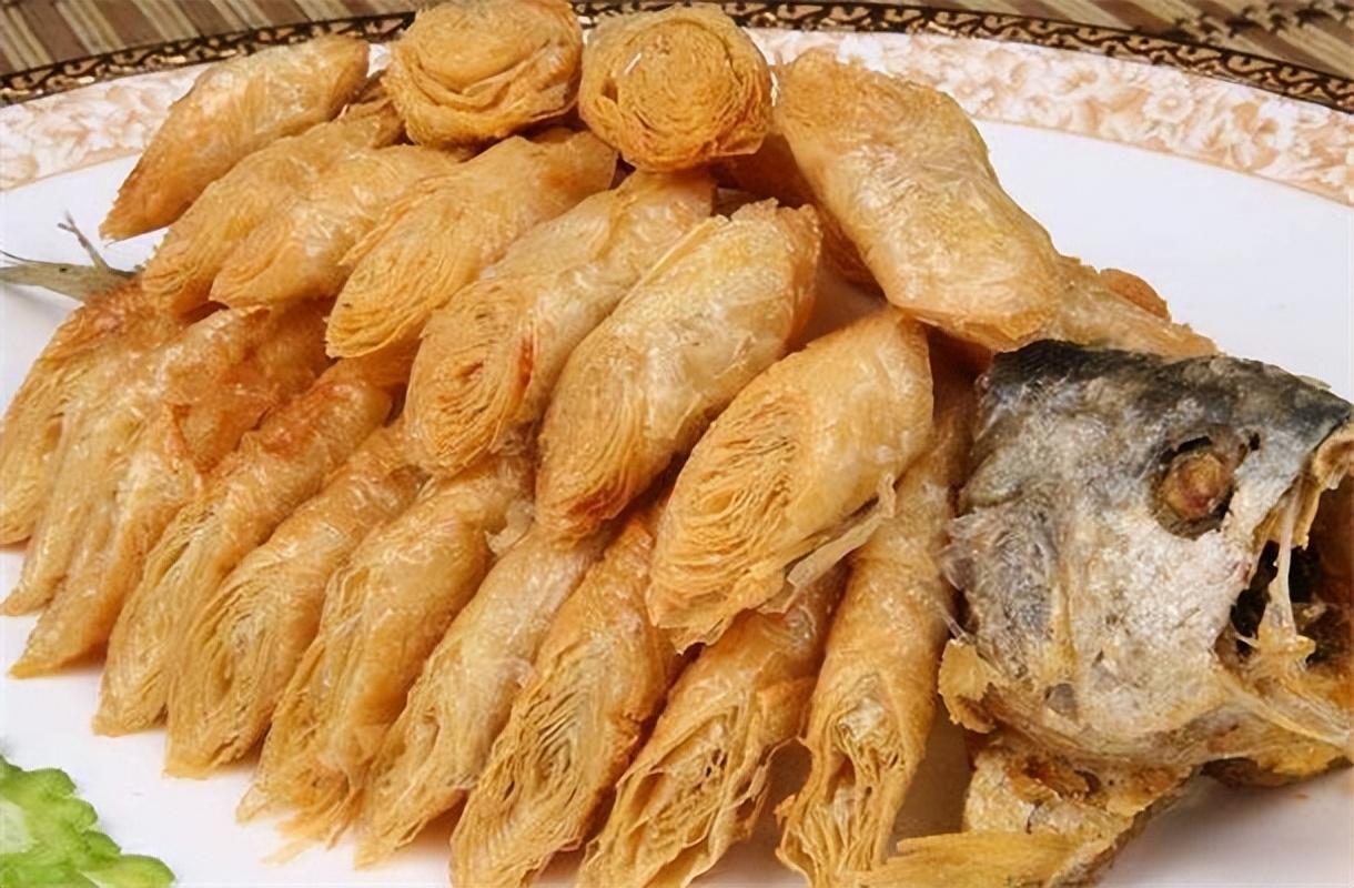腐皮包黄鱼在宁波是一道历史悠久的名菜,使用湟鱼和豆腐皮制作而成。颜色金黄,肉质鲜嫩,香酥可口。