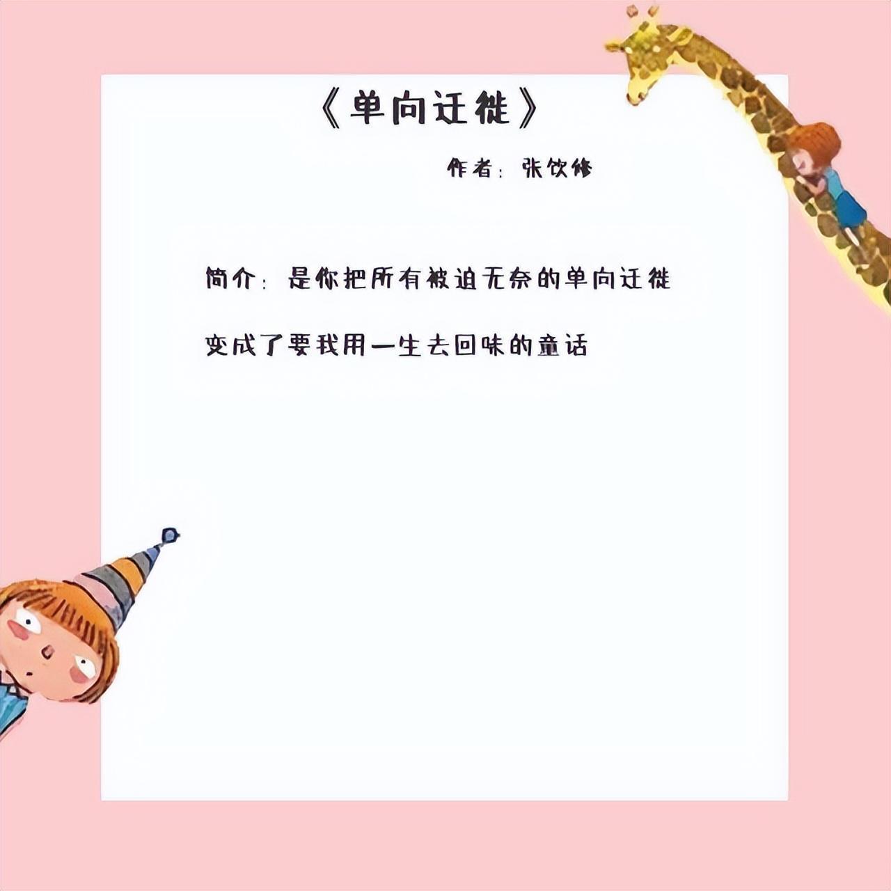 3、《单向迁徙》作者:张饮修