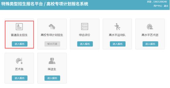 2、注册好账号之后,直接登陆点击“普通自主招生”进入报名界面