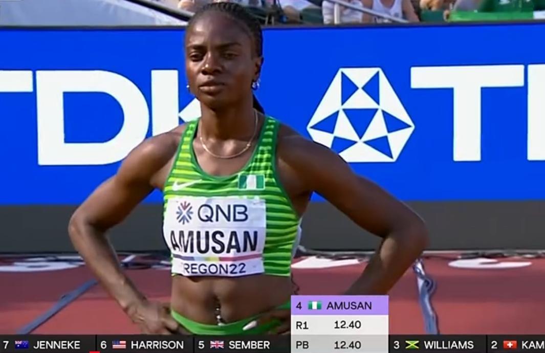 第4道选手的介绍也稀松平常,尼日利亚选手阿姆桑,上届世锦赛和东京奥运会第4名,非洲冠军,她的个人最好成绩也是非洲纪录12.40秒,离12.20秒的世界纪录还有一大截。