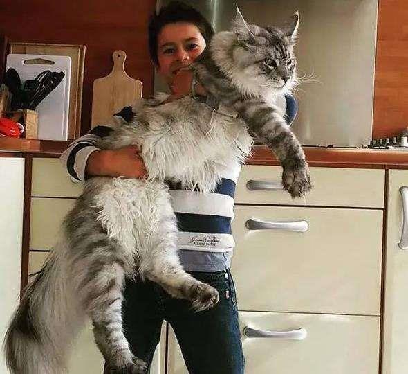 缅因猫原产于美国缅因州,是世界上体型最大的猫,身长可达到1.2米。缅因猫虽然体型很大,但是性情温顺,对人亲近,还非常的善解人意,对主人很贴心,是很听话的一种猫咪。