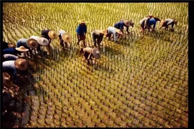 20世纪60年代,海南黎族的农民在水田中挠秧。
