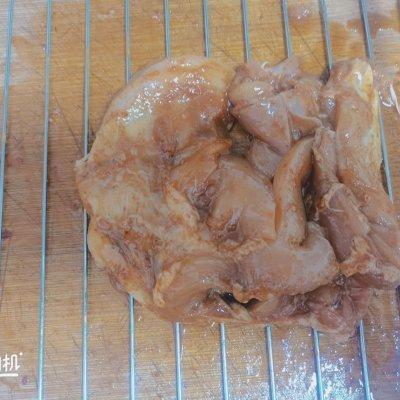 5、我腌制了一上午,把腌好的鸡肉放在烤架上。