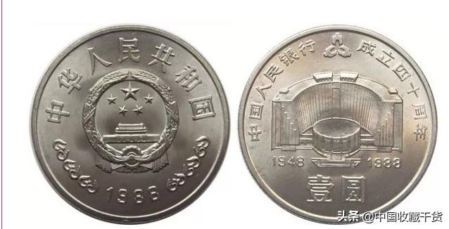 中国人民银行成立40周年纪念币,俗称“建行”币,是1988年12月1日由中国人民银行发行成立的40周年纪念币,面值为1元,每套1枚。市场价在估计在千元以上。“建行”币是中国流通纪念币当之无愧的币王!多年后的现在,“建行”币已升值很多倍。
