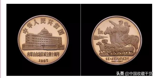 1987年发行,材质为铜镍合金,面额1元,发行量905.4万枚。