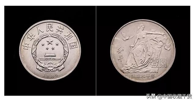 1986年发行,材质为铜镍合金,面额1元,发行量2704.8万枚。