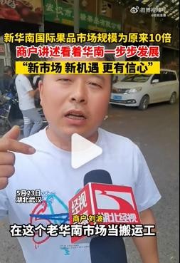 已有17年历史的武汉华南果品批发市场将整体搬迁至黄陂区汉口北,更名为新华南国际果品市场,将在5月24日正式开业。新华南国际果品市场总经理黄萍介绍,武汉华南果品批发市场作为一代人的记忆,已有17年历史,由于周边交通限制和拓展经营的需求,搬迁至汉口北。新的市场面积是原来的10倍,档口数量是原来的5倍,配有24000平的香蕉工坊,24000平的专业冷库。还配套了专业物流,现在商户不用自己考虑上下货的问题。