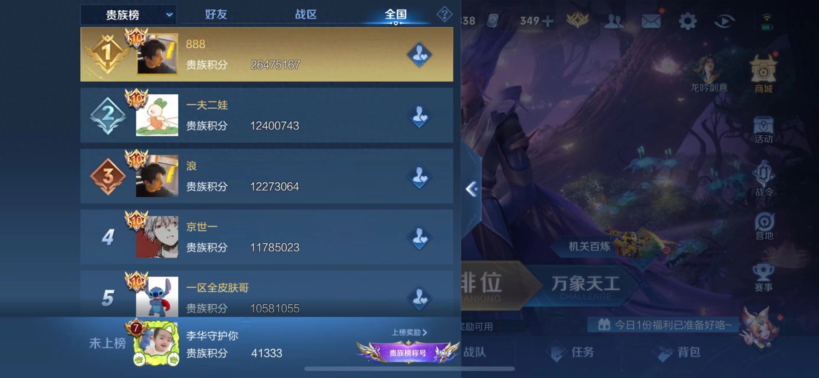 王者荣耀贵族榜前五