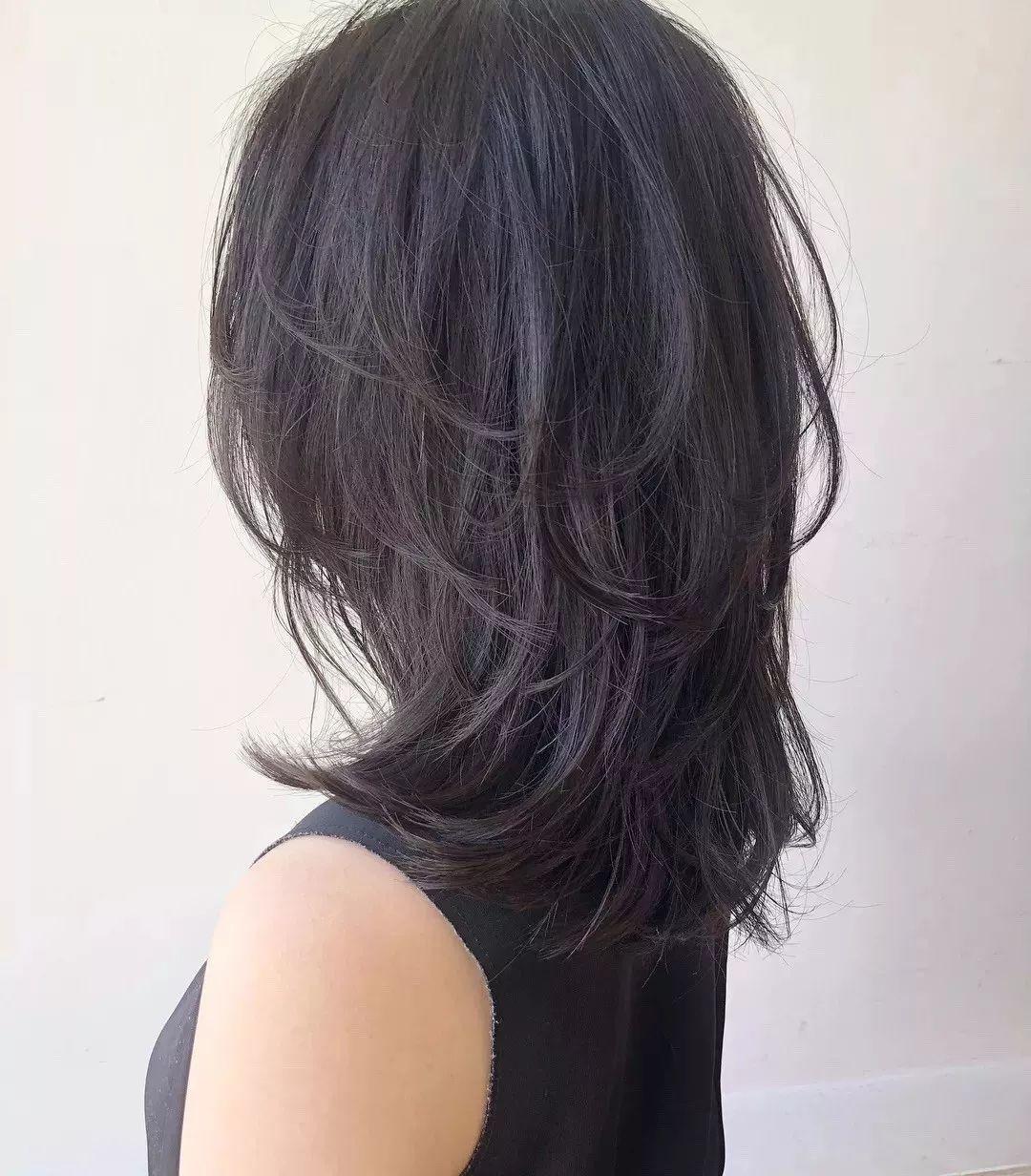 另外发量少的妹子也会更适合有层次感一点的发型,中长发发量少的妹子也很好打理哦。