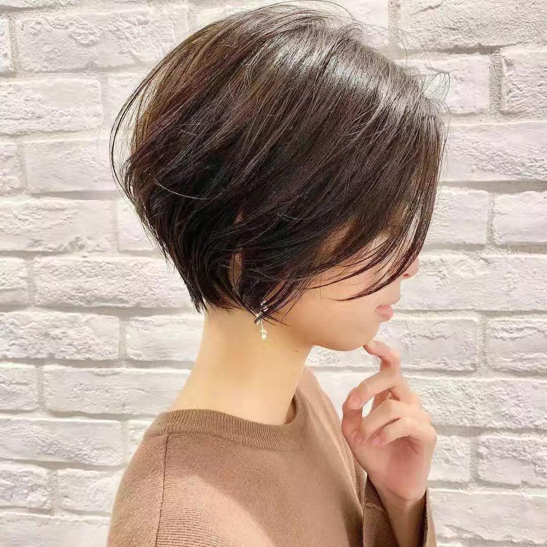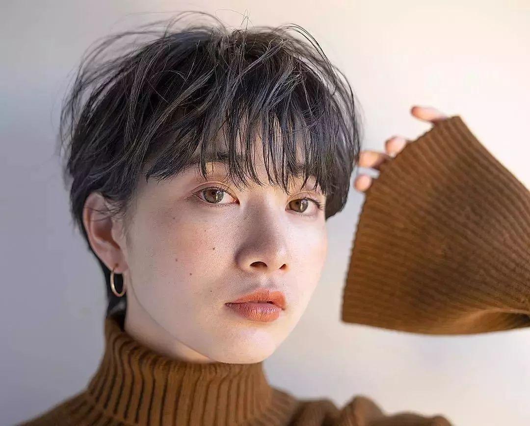 超短发特别适合发量少的妹子,因为本身发质细软如果头发过长会非常的贴头皮,还会显得脸大,短发剪出层次因为发量不多会非常的有轻盈感。