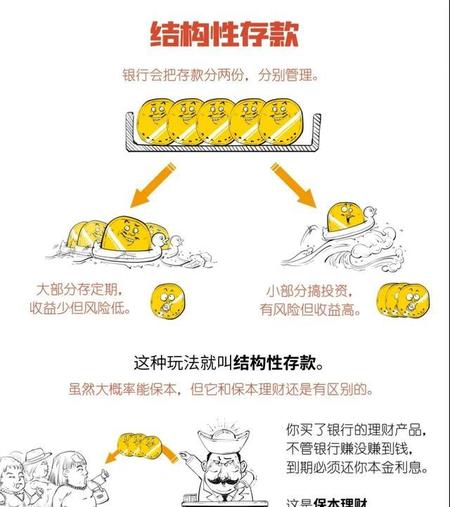 简单来说就是结构性存款分成两份,大份存定期,小份银行用来投资金融产品获取收益。