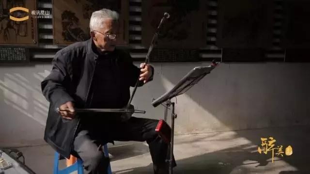 一位先生正坐在里面投入地拉着二胡,