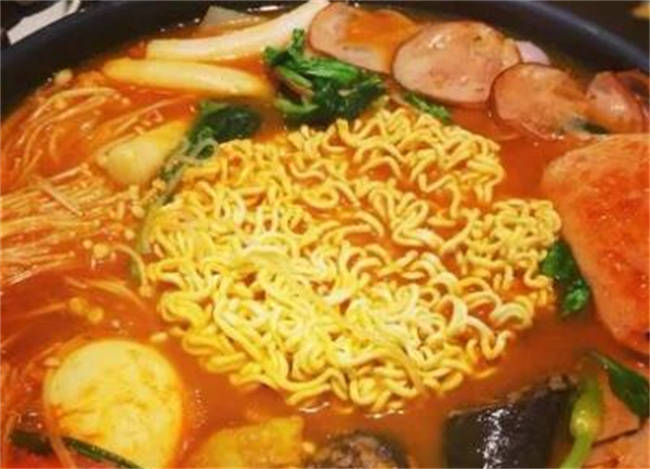 部队火锅也是韩国的经典美食做法也特别简单,在家里面把各种食材切好,清理干净,放到锅里面煮熟,即使是前一天吃剩下的菜也都可以放到里面,不过做部队火锅一定要有年糕味道才更好,所有的纸食材煮熟以后,加上韩国辣酱还有几片芝士,再放上一包方便面,一桶煮熟,部队火锅就做好了。