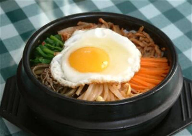 石锅拌饭可以说是最简单的一道韩国菜,主食和菜都有,简单又方便,需要准备的食材有米饭,青菜可以根据自己的喜好随意搭配,比如胡萝卜丝,豆芽,角瓜片,喜欢吃肉的可以放上点儿酱牛肉,正宗的韩国拌饭是青菜,都是用水煮角瓜片用生的,但是我个人喜欢,吃油炒过的,少放一点点油,把各种青菜炒一下,那样味道更好吃,炒青菜的时候不需要调味儿,把青菜都炒好盖到米饭上,然后再建一个五分熟的荷包蛋,加上适量甜甜辣辣的拌饭酱,既简单又美味。