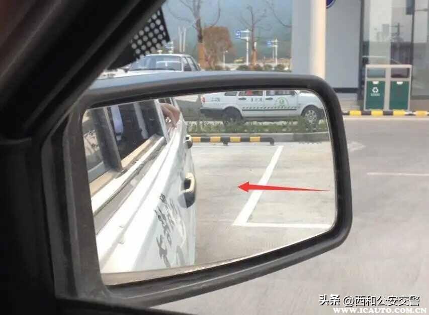 6、等到镜子的下边线跟停车点平齐之后就可以停车,整个操作就完成了。