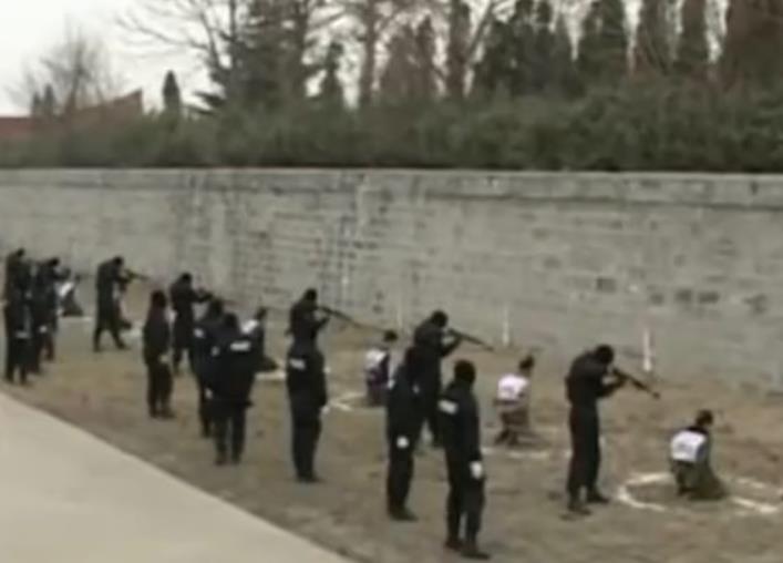 这是2005年我国河南省洛阳市一群死刑犯被执行枪决时的现场画面。