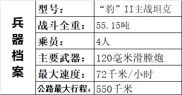 德国“豹” II 系列坦克是在“豹” I 坦克的基础上发展起来的一款优秀的主战找坦克,在世界所有现役主战坦克中,它的综合性能是最优秀的。1998年以来,在各种组织评选的《世界坦克排行榜》上,“豹” I坦克的各种改进型号(A5和A6)一直占据据着第一的位置,堪称现役主战坦克中的王者。