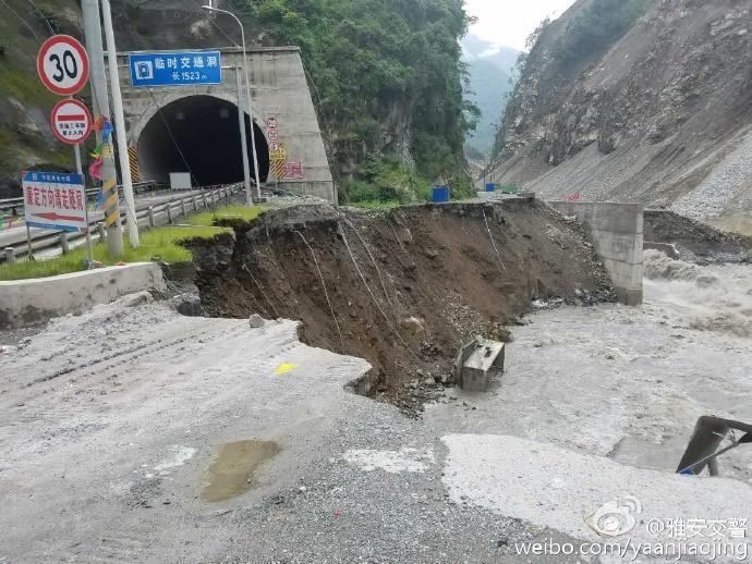 7月9日,@雅安交警 #路况直播# 国道318线天全县城至二郎山老虎嘴,安乐宫两处路基悬空。双向交通管制。现国道318线进康定受阻,短期不能恢复,大量车辆经雅西高速涌向省道217线,省道217车流骤增。