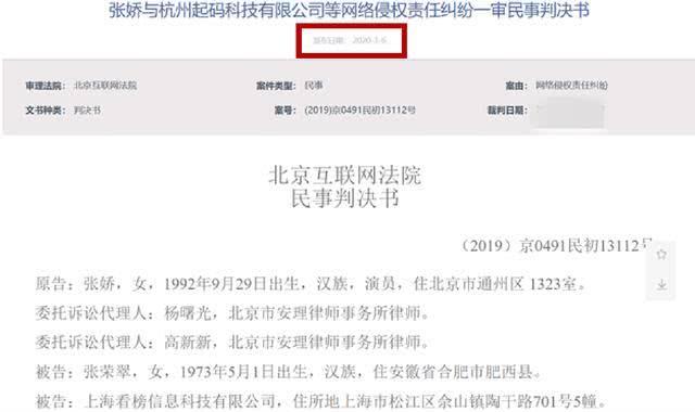 之后,深受其扰的张天爱选择利用法律手段维护自身权益,一直到今年的3月6日,终于维权成功,法院公布了张天爱名誉权案胜诉的判决书,这对张天爱来说是非常重要的,说明张天爱是清白的,是被人诬陷的!