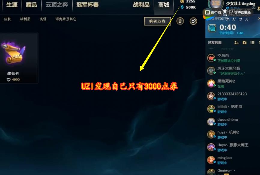 拳头给的超级帐号有多牛?UZI点券不够,一个电话过去10W点券到账