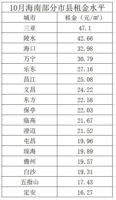 我列出了一个海南最近各市县房租的价格表。