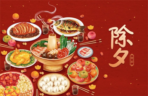 除夕的习俗1.年夜饭除夕夜的年夜饭也叫团圆饭,这顿饭富含各种象征性的食物,意味着吉祥、团圆和丰收。