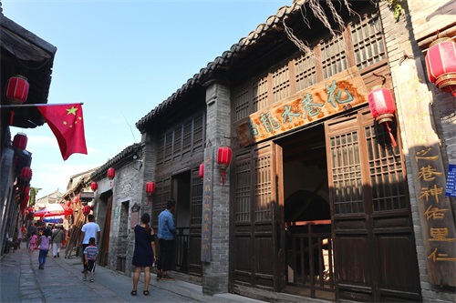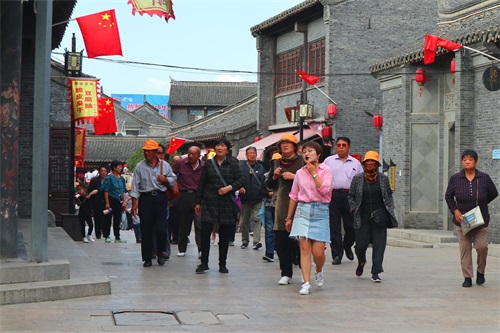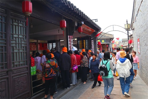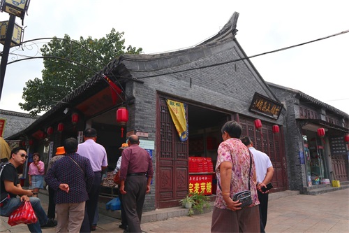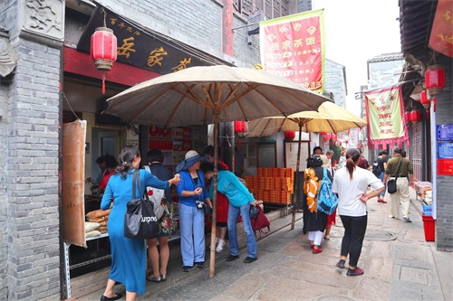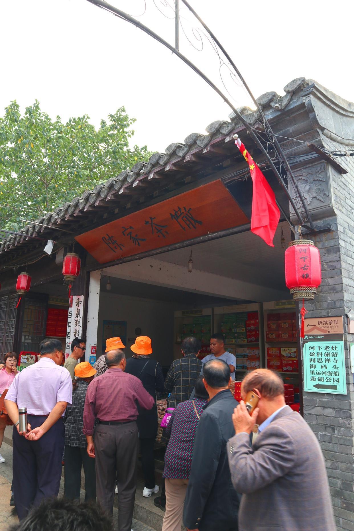 一队队的团游游客不断地进入古镇,古镇里越来越热闹。我在旁边观察了一会儿,这些老年团游客游玩古镇只有半小时左右,匆匆而来,匆匆而去,似乎千年古镇并没有吸引游客,倒是这几家茶馓店有些吸引力。