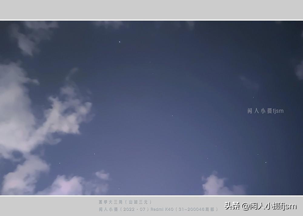 夏季大三角中的,牛郎星,织女星,天津四(手机拍摄,22时32分的城市星空)