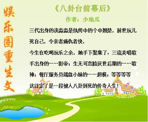 女主前世死后,在世间飘荡了一百年,看穿了父亲和后妈的嘴脸,(女主家是开娱乐公司的,父亲是个倒插门,有个比女主大几个月的私生子)重生后利用上一世的记忆把将来的巨星一个个的挖掘出来,非典型的娱乐圈文。主要讲的是女主的事业线,虐渣男和爱情线不是很多。