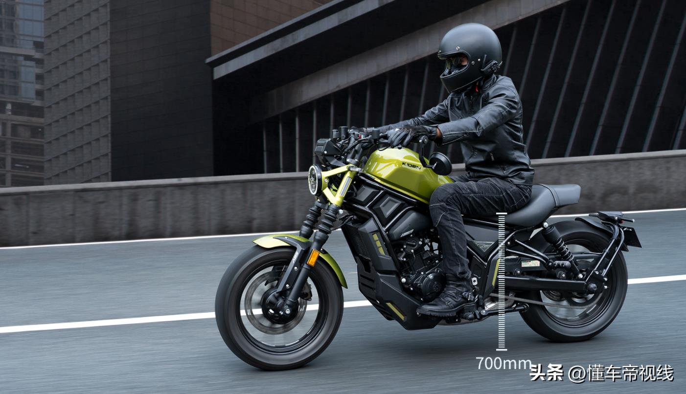 从车型命名不难看出,新车定位为小排量巡航街车,外观设计方面,其车身线条平直,偏向营造机甲风格,这也是启典摩托一直以来的家族化设计理念。车辆前部视觉重心较高,配备有下挂式后视镜、运动型油箱、后摇臂挡泥板以及短尾坐垫。