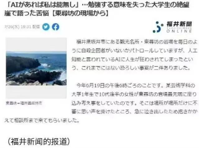 日本两女生东寻坊悬崖自杀,原因竟是担心AI取代自己的技能。