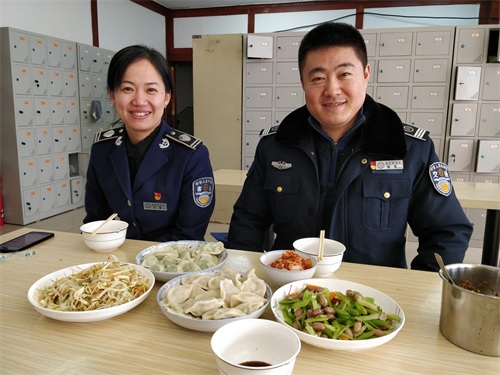 当天中午,南岗客运站为员工准备了饺子。最后吃饭的是南岗客运站当班副站长陆凯(右)和值班副站长王宏(左)。