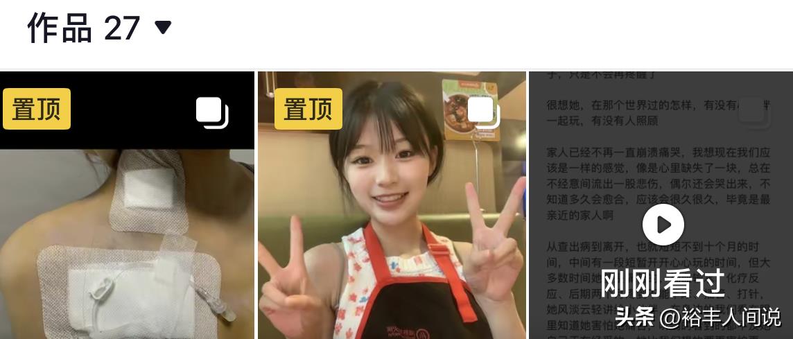 短短27个视频,刨去一则新生、四则以往,一则噩耗,剩下的21个画面就好似她的一生。