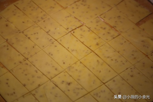 7、 在面片表面划三刀,中间一刀长,两边的略短些。