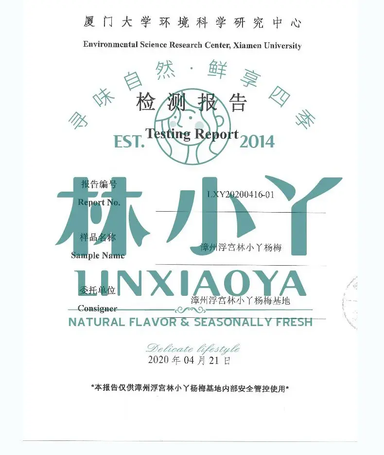 通过了专业检测机构检测后的林小丫杨梅,让你安心享受自然馈赠的美味~