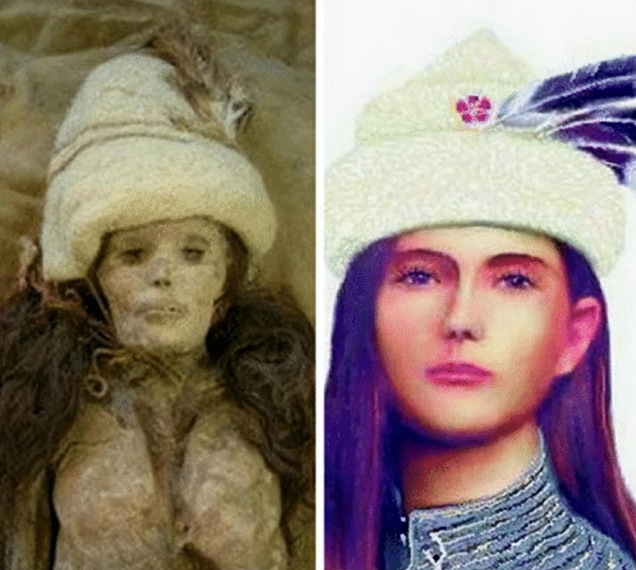 这具女性干尸身高1.57米,血型为O型,死亡时,这名女性的年龄大概在45岁左右,经过科学还原,这具干尸的面貌也出现在我们的眼前,这位女性五官端正,皮肤白皙,和我国新疆地区的人们长相极为相似。