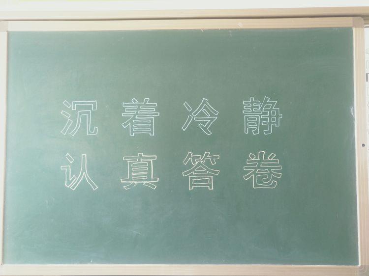 高考考场张贴物同一楼层张贴指示说明该楼层设置的考场数量和考场号,考场前门张贴该考场考场号及印有学生头像和座位号的指示物,考场黑板板书鼓励学生作答的标语,如“冷静思考,沉着应答”等字样,右下角标有主监考姓名,便于学生监督教师。